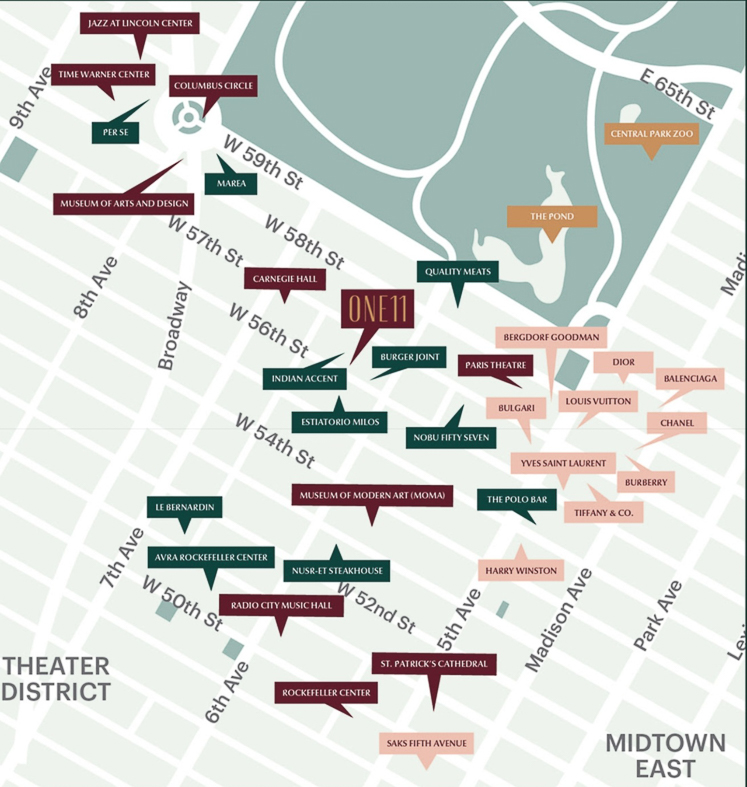ONE11 Residences is a brand-new condominium at 42 stories with only 99 homes settled above the new Thompson Central Park Hotel. Residents enjoy premium amenities and hotel services such as the complimentary food presentations at the Upper Stories Lounge daily! Gastronomic experience with onsite restaurants like Burger Joint (for your hole-in-the-wall, tried-and-true burger with fries), Indian Accent (for your traditional Indian flavors), and live music at Parker’s (for your cocktail nights paying homage to the soundtrack of the Big Apple – from soul, jazz, and blues, to the modern hits of Broadway).