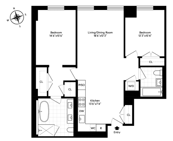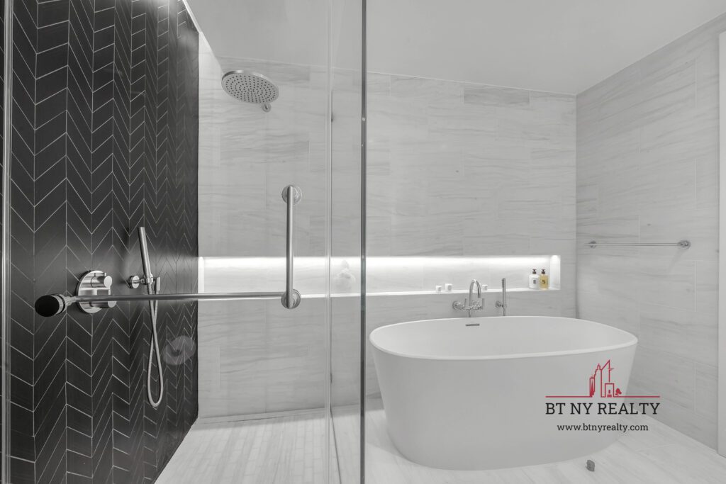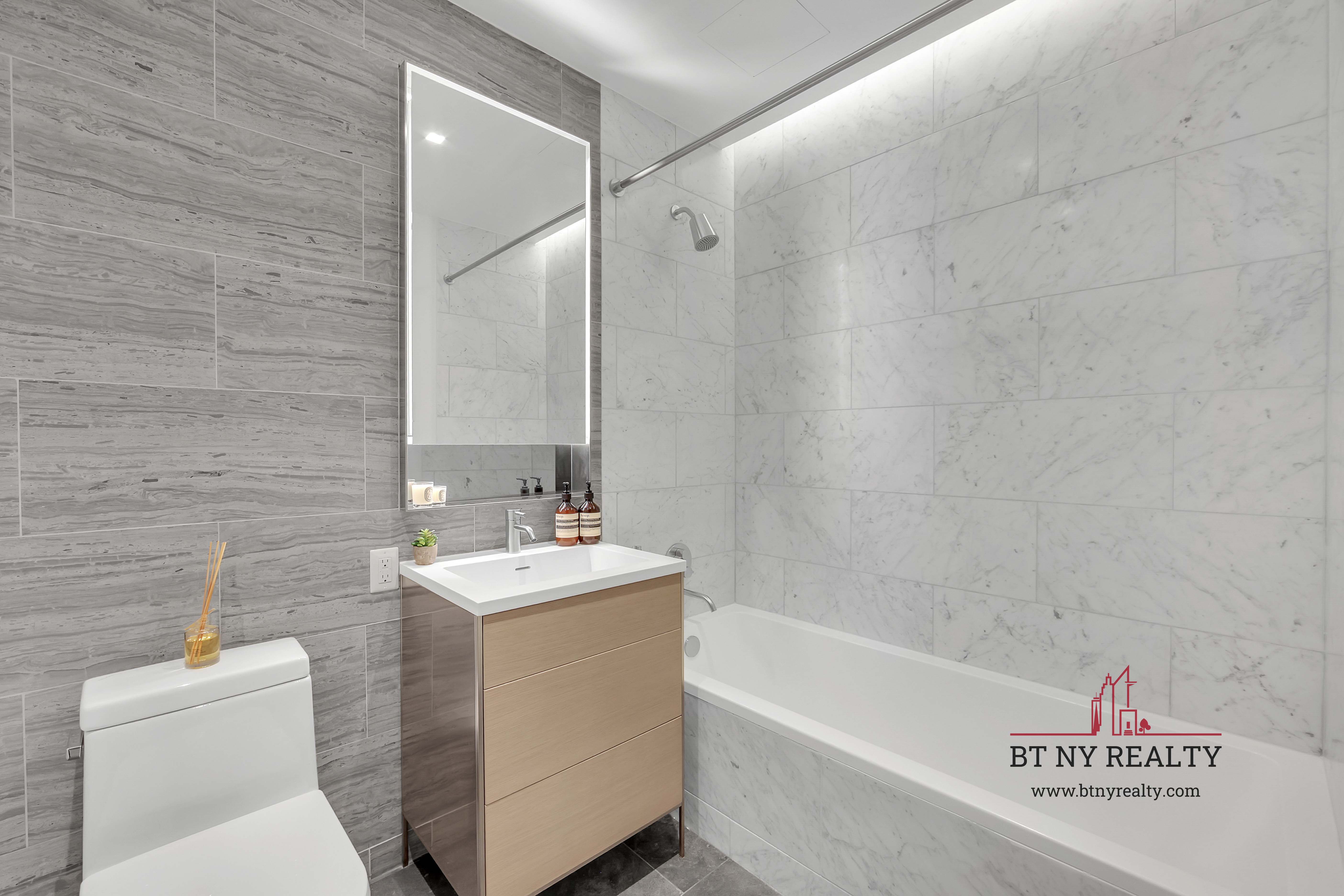 Welcome to this beautifully designed 2 bedroom, 2 bath condo located in the heart of Chelsea, a sophisticated and quiet residence blending comfort, style, and everyday convenience. At over 1,115 square feet, the home offers a well-proportioned layout that balances open living space with private split bedrooms. Upon entering, you’re greeted by oversized tilt-and-turn windows and elegant wide-plank white oak floors throughout the space. The fully integrated Scavolini kitchen features Miele appliances and wine fridge, making for perfect quiet mornings and elevated entertaining. The serene primary suite is large enough for a king sized bed, an added closet, and an extra relaxing nook or work-from-home space. The primary bathroom includes a spa-caliber bath with radiant heated floors, soaking tub, and separate glass shower. The spacious secondary bedroom has tons of closet space and is right next to the second bath with a Gioia Venato honed marble surrounded shower and staggered Woodgrain Silver honed marble walls.