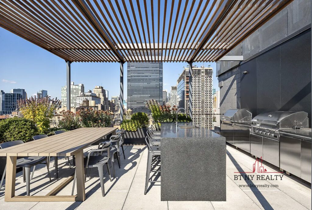With over 1,900 square feet of lushy landscaped space, the rooftop lounge and Cabana seating deliver a true urban sanctuary. Entertain in style at the trellis-framed dining area, complete with a full outdoor kitchen with a pizza oven, smoker, and built-in grill.