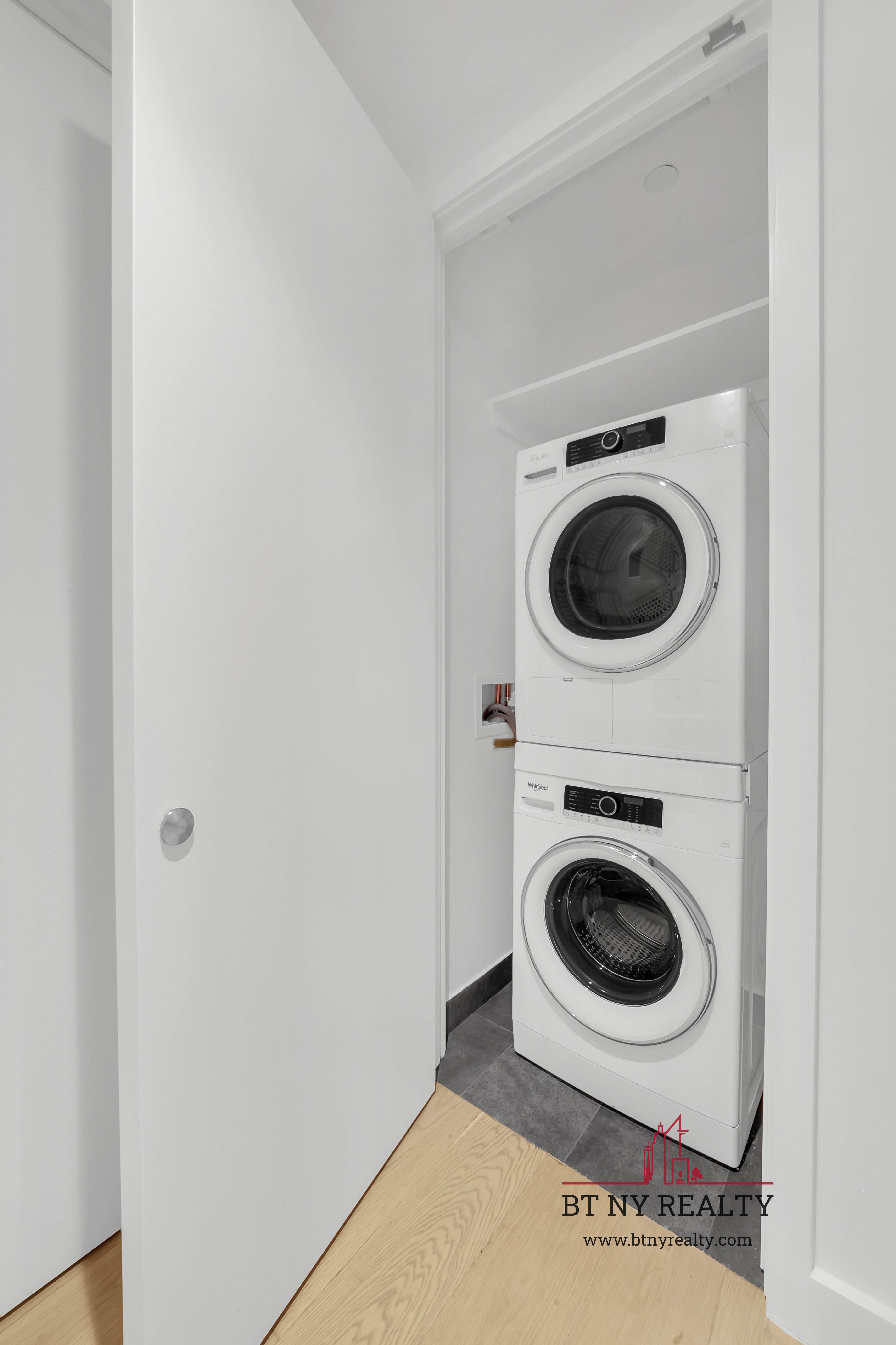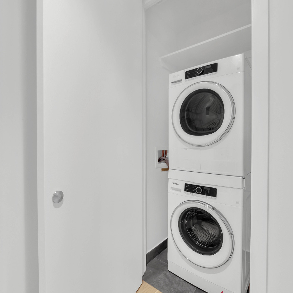 Enjoy the convenience of a washer and dryer right in your home— a highly sought-after feature for city living.